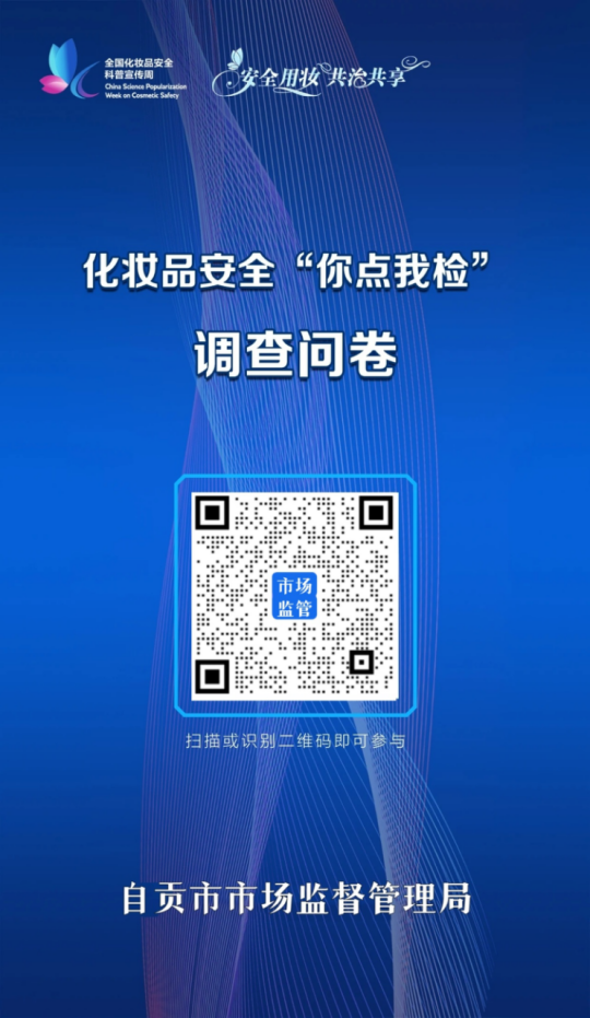 5月22—28日,自贡市将开展“安全用妆,共治共享” 为主题的化妆品安全科普宣传周活动。 活动期间,为充分发挥社会公众对化妆品安全监管的参与和监督作用,推进化妆品安全社会共治,保障广大消费者用妆安全,自贡市市场监督管理局将组织化妆品安全“你点我检”调查问卷,面向全市征集社会公众最关注的化妆品种类、化妆品经营场所等进行抽样检验,积极回应社会公众对化妆品消费安全的关切。 本次调查问卷设置了“您希望对哪些类别的化妆品加强抽检”“您希望在哪些场所开展化妆品质量安全监督抽检”等问题,提供了防晒类、染发类等10个化妆品类别和美容美发场所、专卖店等9个化妆品经营场所供广大消费者点选。同时面向消费者,征求化妆品安全“你点我检”活动意见建议。